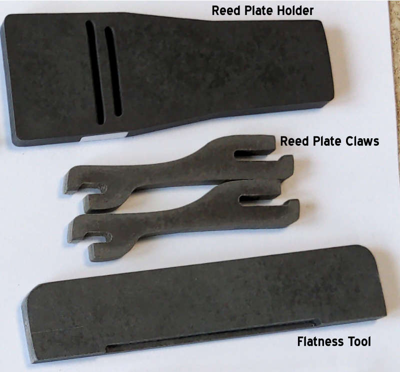 Straight, flat reed plates fitted to a flat comb are the best framework for the reeds. Even a thousandth of an inch of space between the comb and reed plate means the reed will be less efficient at converting air flow into decibels.