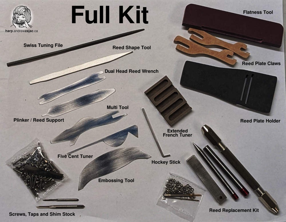 This complete kit will help you with every aspect of upgrading your harmonica including: