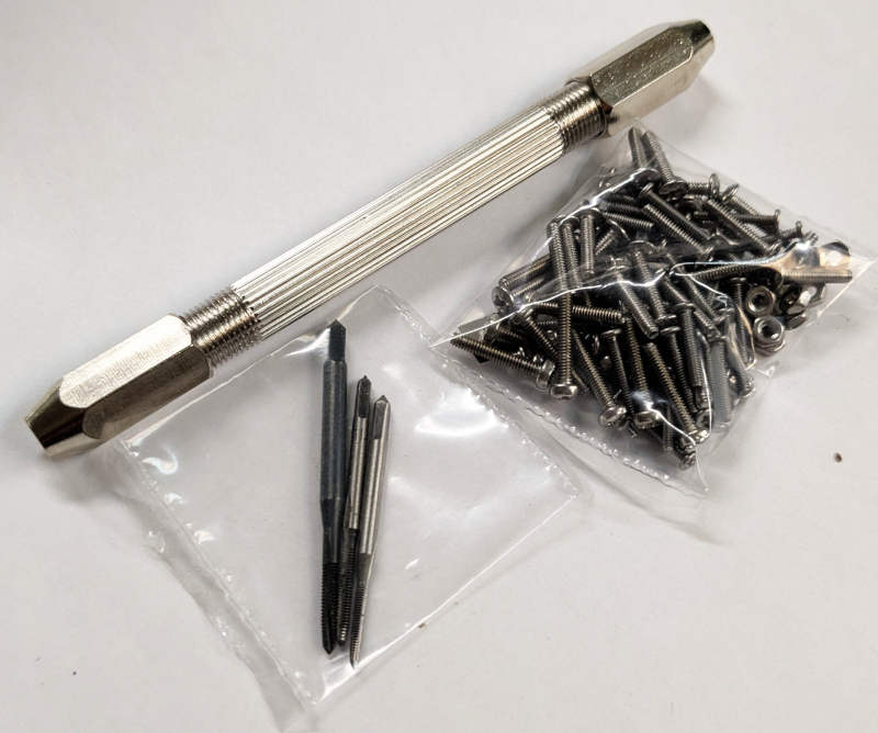 Five M2 10mm screws and five M2 nuts are all that is needed. In fact more screws can lead to less air efficiency. Three screws hold the reed plates to the comb and two screws at the front hold the cover plates.